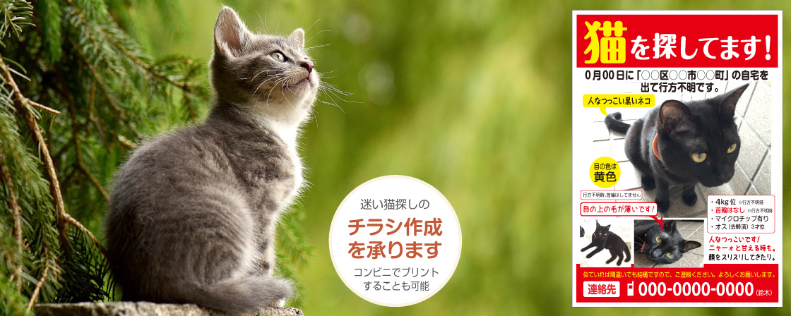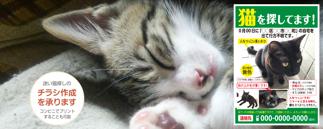 - 迷子猫チラシ総本店をご利用ください誠にありがとうございます。
